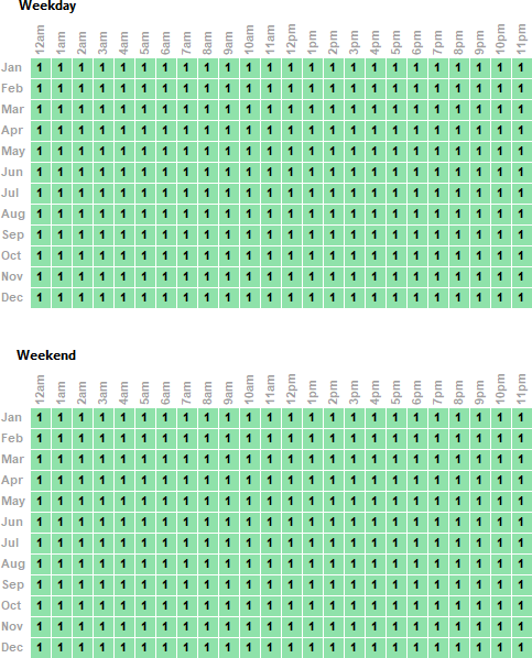 There is only one TOU period, so I set the period on the Weekday and Weekend schedules to 1 with my mouse by selecting the entire schedule and typing a "1":