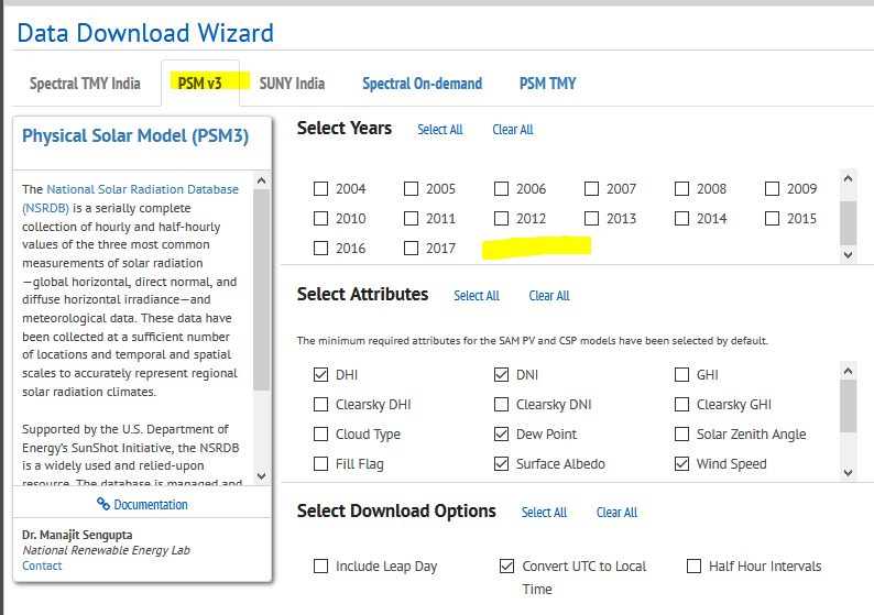 2. NRSDB viewer refuses to show me an option to download the same PSM TMY under the "PSM v3 Tab". On the PSM v3 tab, no TMY file is listed as an option check boxes for each year. (I realize there is another tab named PSM TMY (not named PSM v3 TMY3) and there are options to select tgy tdy with little or no documentation of what the website is showing today vs a year ago) The white papers is general provides very usefull and informative resources but does not give a sense for the timeline of how everything has changed and what I'm actually seeing on the website today. So if there is a quicker answer since you understand the nuance that would very helpful.