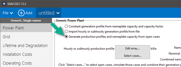 UPDATE: As of SAM 2021.12.02, the Combine Cases macro is replaced by the Calculate generation profiles and nameplate capacity from open cases option on the Power Plant page for the Generic System model and Generic Battery model. See the SAM YouTube channel for a short tutorial .