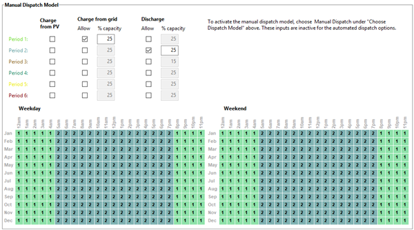 How SAM dispatches the battery depends on the Storage Dispatch Options you choose on the Battery Storage page.