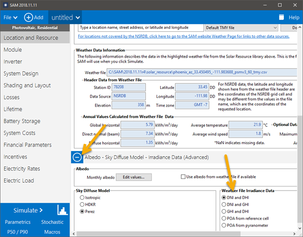 I use a file zith only GHI and DHI, so I want use you irad_mode = 2.