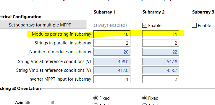 When I create a report and my system has more than one subarray, in the field "Modules by string" SAM puts the "modules by string" of subarray 1 in all other subarrays.