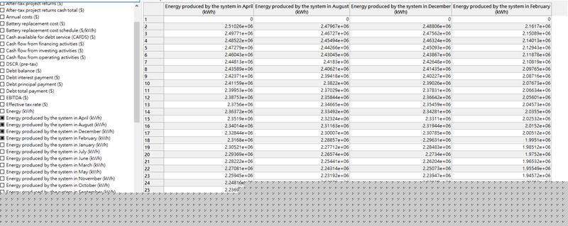 The screenshot you posted is of the total energy produced in each month for each year of the analysis period. If you are seeing a problem with that data, please reply with a description of the problem.