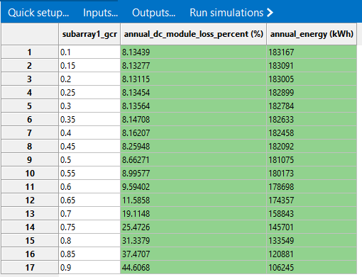And I kept the same pitch: 1.75 m and GCR: 95.4% in PVsyst and I got less module loss and more Annual energy output under same conditions.