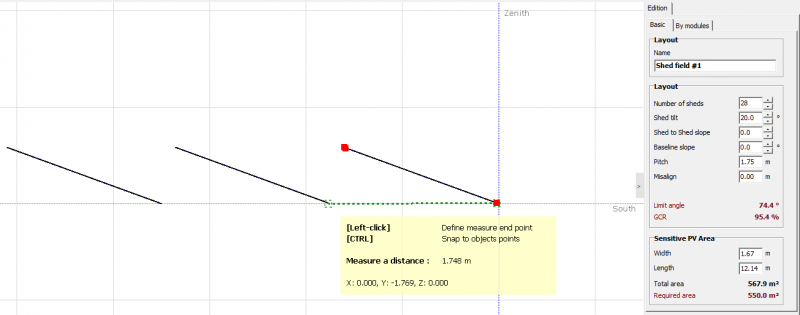 But in SAM row spacing of 1.75 m is different from the one you calculated (1.74 * cos( 20 ) + 1.75 ).