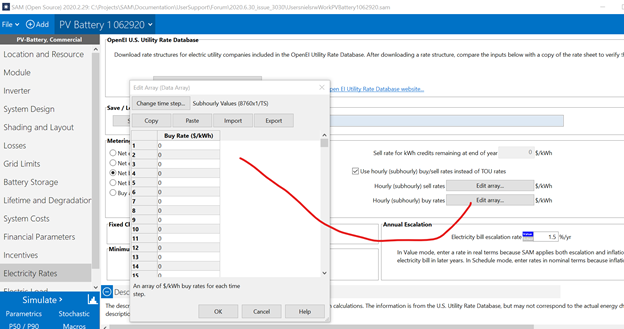 One question, I entered the site's electricity purchase rate by first selecting the rate that was in the U.S. Utility rate database.. but it was wrong and did not include sales tax, so I edited the rates and the on and off-peak periods. Do the steps you noted above, have SAM use those purchase rates?