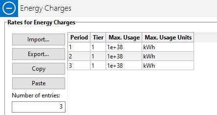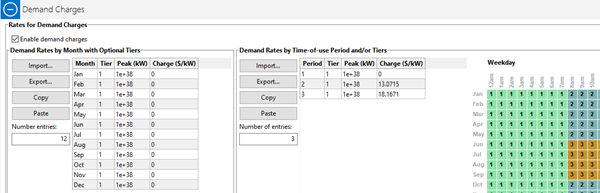 Instead, I updated the site's electric rate - in the grids provided - for usage rates and demand charges. You can see this in the attached file.