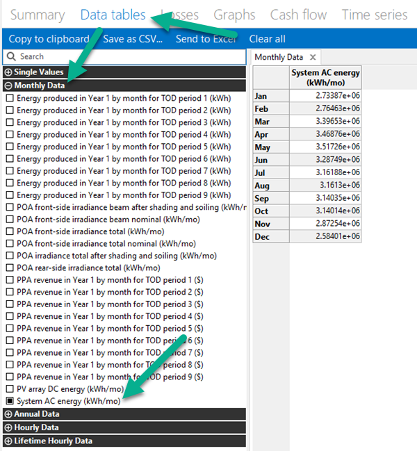 How to find the monthly performance ratio and capacity factor for PV system. I am designing a 1 MW PV system. In the results I can find only annual performance ratio and capacity ratio. I need to see the monthly variation of Performance ratio and Capacity ratio in SAM. How to do that?