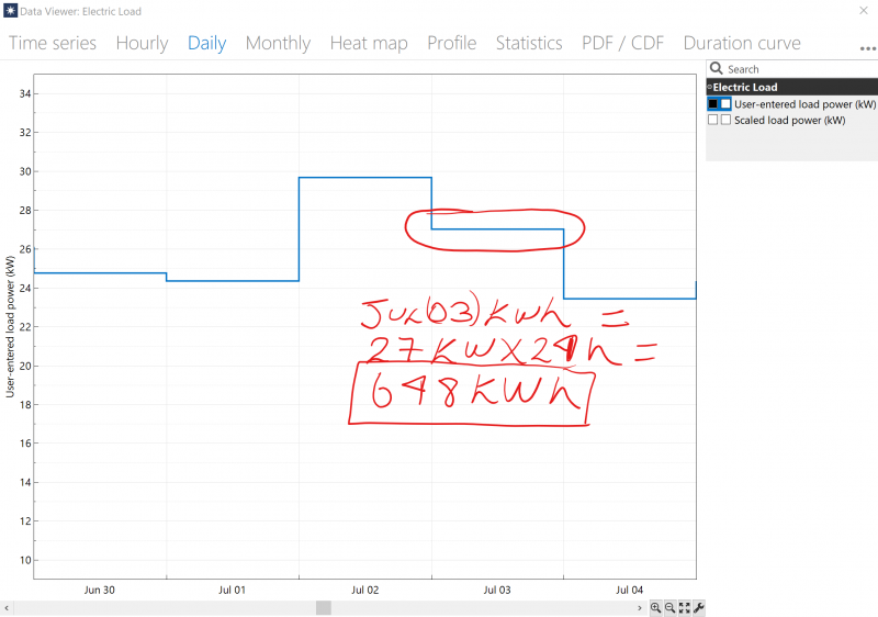 Daily kWh from the load profile was created by Carlos Liquet