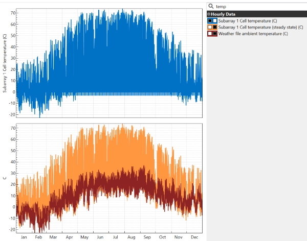 Here are results from the heat transfer method using an hourly weather file from the NSRDB for 2015 at latitude = 40.73 and longitude = -77.94 decimal degrees: