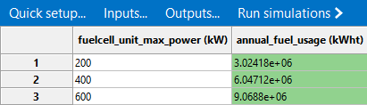 I'm currently using SAM to simulate a PV-FC-BAT model and was wondering how the data for "Fuel consumption of fuel cell (Mcf) was calculated. I can't seem to find a consistent pattern varying the stack size and nameplate values.