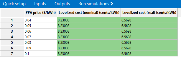 Replied by Colin Schimmelfing on topic LCOE changes with different PPA values, even without debt, taxes, etc