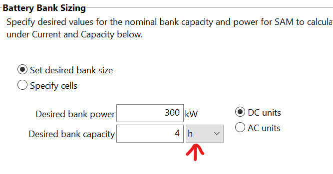 I'm attempting to create an optimization of a DC coupled PV+BESS system using the Parametrics feature. I am varying the Desired bank power (kW) and the Desired bank duration (hrs) variables, but I've noticed that regardless of these inputs, the Annual energy exported to the grid from the battery (kWh) output variable does not change by as much as expected. I have confirmed this by running two different configurations via the standard Simulate feature.