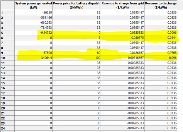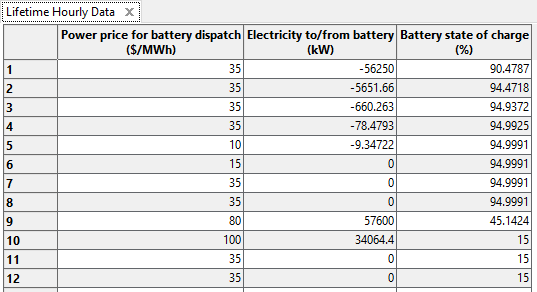 In addition to the power price, the dispatch model considers the cost of cycling the battery in an effort to minimize the number of replacements over the life of the project defined by the analysis period on the Financial Parameters page.