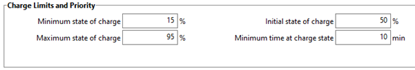 You can show the "Battery state of charge" variable in the results to see the effect of these limits: