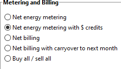 Then, set the Metering and Billing option to Net energy metering with $ credits: