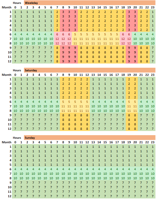 - In South Africa the TOU rates are different for Saturdays and Sundays, can this be modelled as only Weekdays and Weekend input tables are available, see picture below.