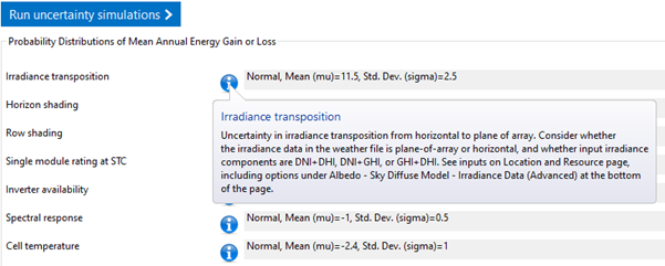 I have questions about the uncertainty analysis in the Detailed PV Model as follows (see screenshot below as a reference):