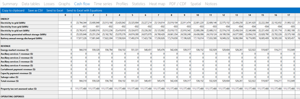 I was not able to replicate the results in the screenshot you shared. When I run a simulation in your file, the cash flow shows energy market revenue in Years 1 through 25.