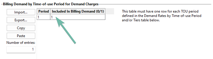 To fix the issue in your file, under "Billing Demand" on the Electricity Rates page set Included in Billing Demand (0/1) in the "Billing Demand by Time-of-use Period for Demand Charges" table to one for Period 1: