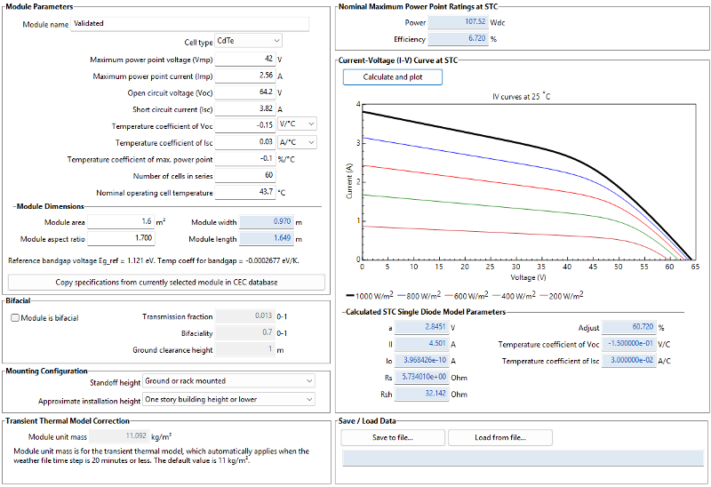 exec fail(pvsamv1): CEC 6 parameter model: Could not solve for normalized coefficients. Please check your inputs.