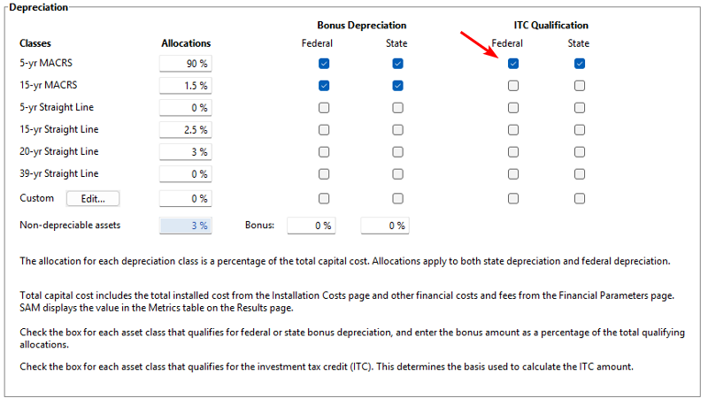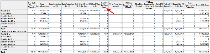 Note that the ITC qualifying costs are determined by the check boxes on the Depreciation page.