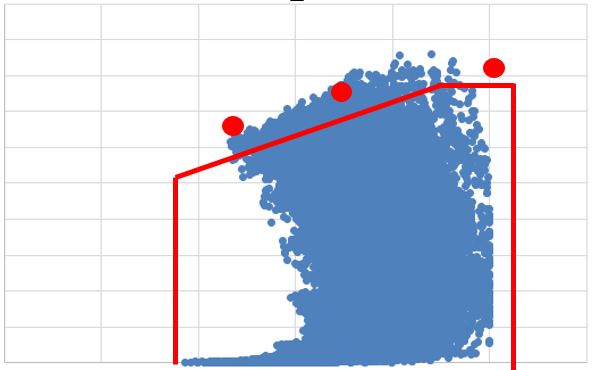 What i'm basically trying to do is apply inverter input limits so that i know how the inverter would clip the input. SAM's clipping method does not take into account the inverter max current so this is why I need to develop my own method. I'm trying to generate the IV curve to be able to know where the operating point would be if for some points they lie outside the inverter envelope. For example, lets say the y-axis is Pdc and x-axis is Vdc for the PV panel and when I connect the inverter I want to know where the new points will be. The only way to truly know where they will move to is if I have the IV curve of each point. The red is the inverter envelope and the 3 red points are some of the blue points that lie outside the inverter envelope. I want to find all the IV curves for all the points outside this envelope so i'm trying to generate the diode parameters SAM uses but for some of the points that lie outside this envelope i'm getting an error when I run the SixParameterSolver module as stated above.