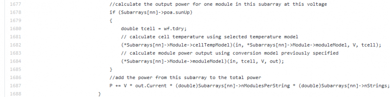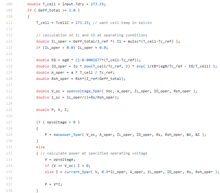 Functions involved in these calculations are also in shared/lib_pvmodel.cpp at github.com/NREL/ssc/blob/develop/shared/lib_pvmodel.cpp .