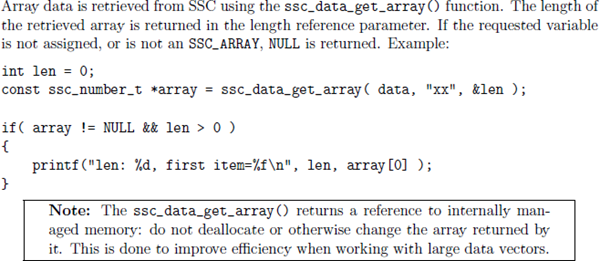 Section 3.7.2 of the SSC Guide explains that the ssc_data_get_array() function has three parameters instead of two: