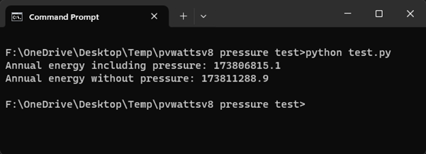 I've been trying to format a weather file; I added all elements mentioned in the weather data elements page, but noticed the output of pvwattsv8 was not quite right, after playing around with the weather file I found that if I added the pressure column on the weather file the output was correct. What confuses me is that the weather data elements page says that PVWatts doesn't use the atmospheric pressure from the weather file, but the pressure seems to affect the output.